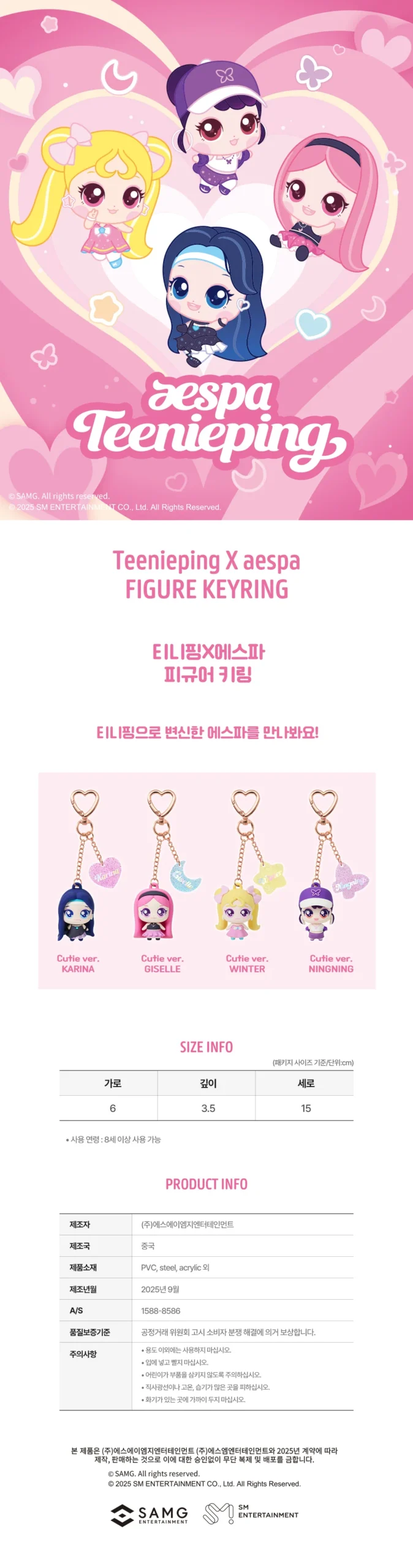 The AESPA x TEENIEPING Official MD Figure Keyring (Cutie Ver) brings together K-pop charm and Teenieping’s magical universe in one adorable collectible! Each member—Karina, Giselle, Winter, and NingNing—has her own unique keyring design, showcasing her personality through bright colors and cute expressions.