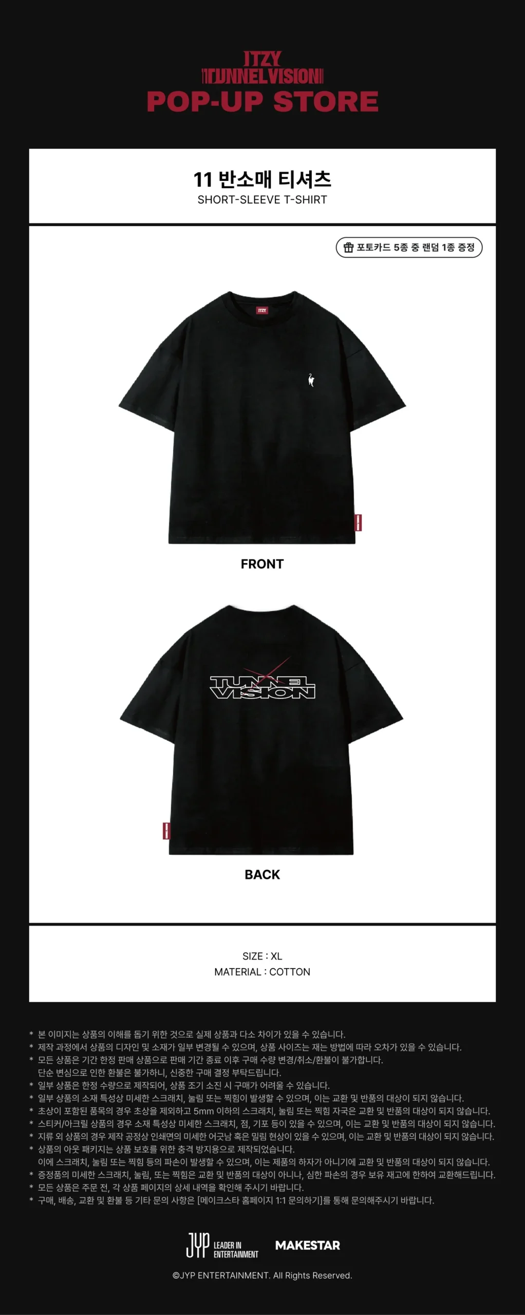 Official ITZY Tunnel Vision Pop Up Store short sleeve t-shirt in black XL/Free size.
