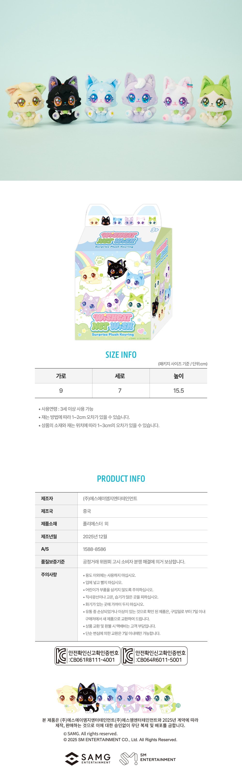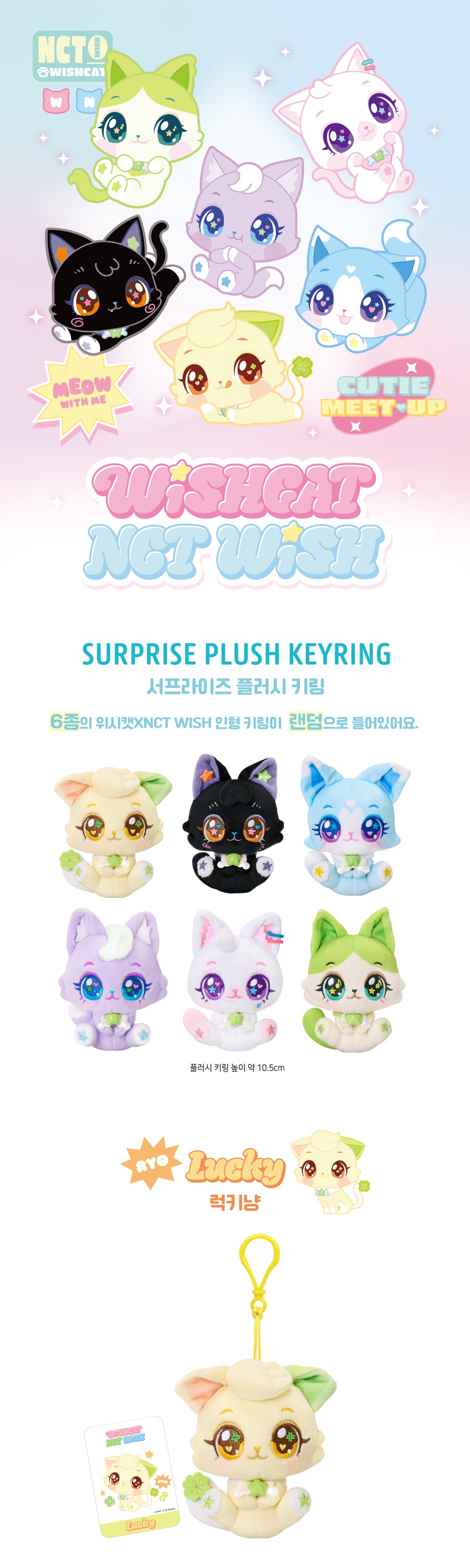 This official merchandise item features plush keyrings inspired by the WISHCAT x NCT WISH collaboration. Each piece showcases soft materials and detailed embroidery. Because of this, the keyrings feel gentle to the touch while remaining visually appealing.