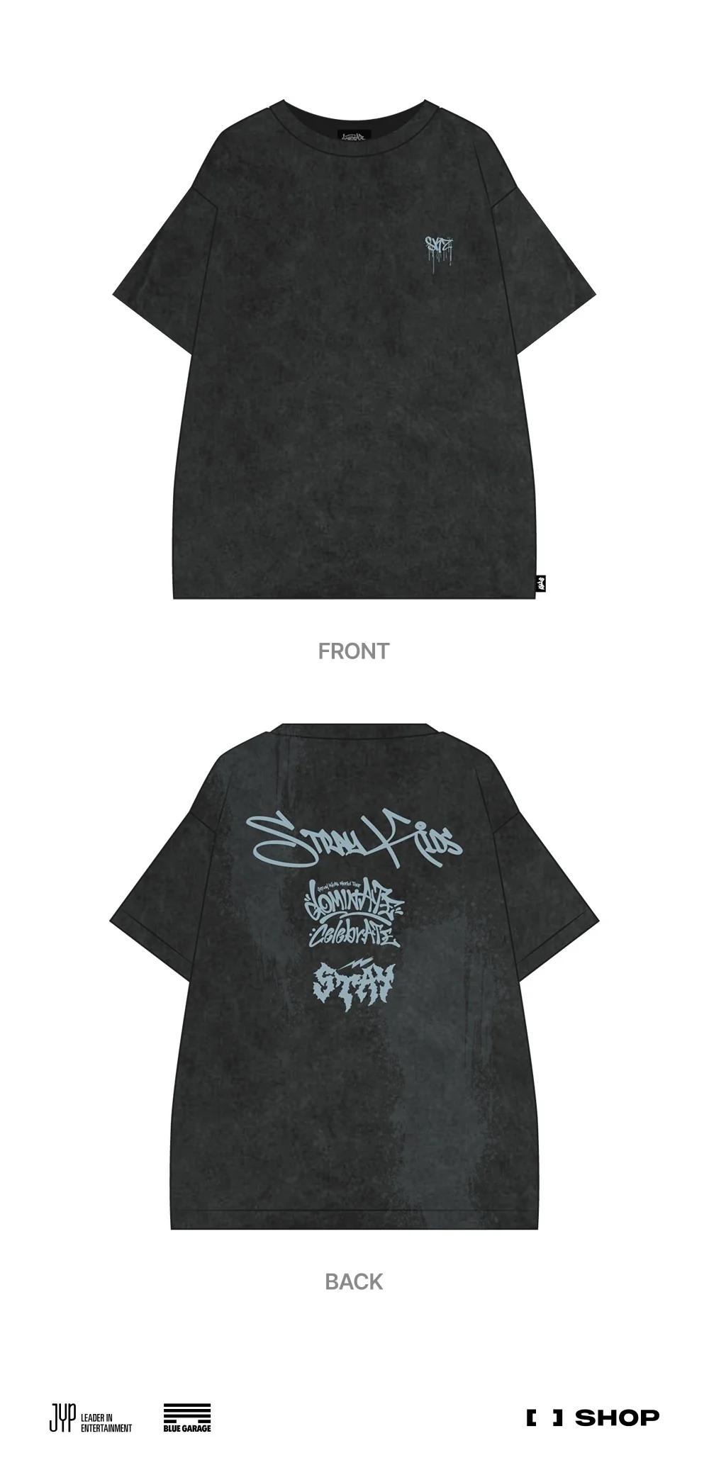 This T-shirt comes in one design only with no color or size variations. Despite its simplicity, it is a must-have collectible for any Stray Kids fan, adding value to your dominATE : celebrATE merchandise collection.